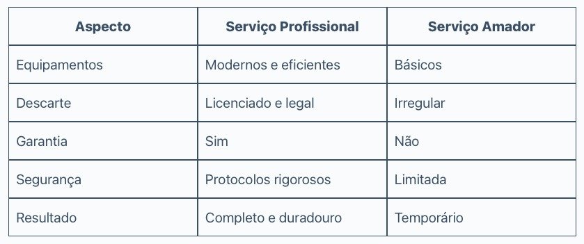 Nossa equipe trabalha com equipamentos adequados e procedimentos seguros para minimizar qualquer impacto durante o atendimento.